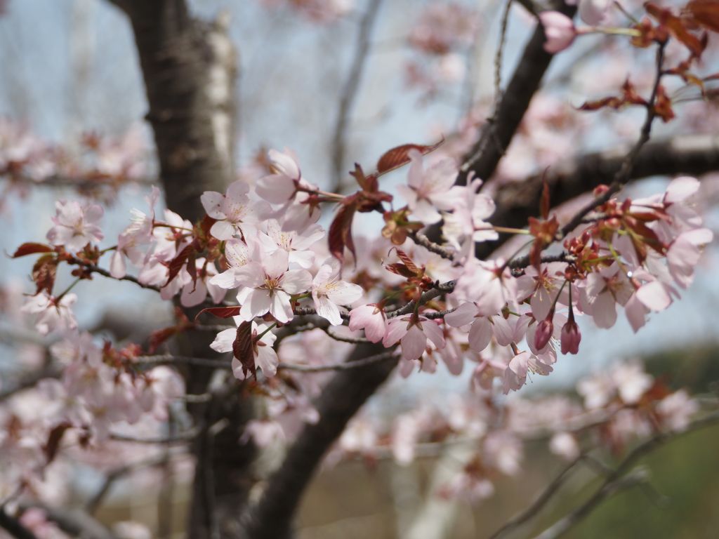 当保護センター周辺では、桜も見ごろです。色の濃いオオヤマザクラはよく目立っています。